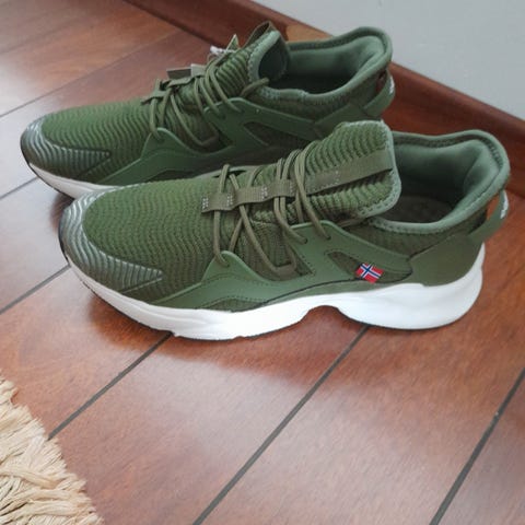 Skoene ser nesten helt nye ut! Minimal slitasje under såler. Ingen slitasje på overflaten av skoene!