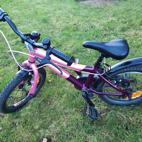 Diamant Ultra barnesykkel med 16 tommers hjul, i blå og oransje farge. God sykkel og fungerer bra.