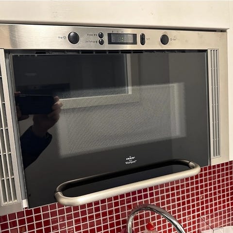 Integrert mikrobølgeovn i svart med stål håndtak. Fin mikrobølgeovn med grill funksjon.