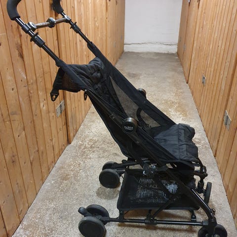 Vogn med grønn og grå farge. Barnevogn med tre hjul, egnet for jogging og utendørs bruk. Utstyrt med sikkerhetssele. Vi har hatt denne vognen som vogn nr. to på hytten og brukt den til to barn. Den er en del år gammel, men den er relativt lite brukt og er i god stand. Vi har vært veldig fornøyd med den som turvogn.