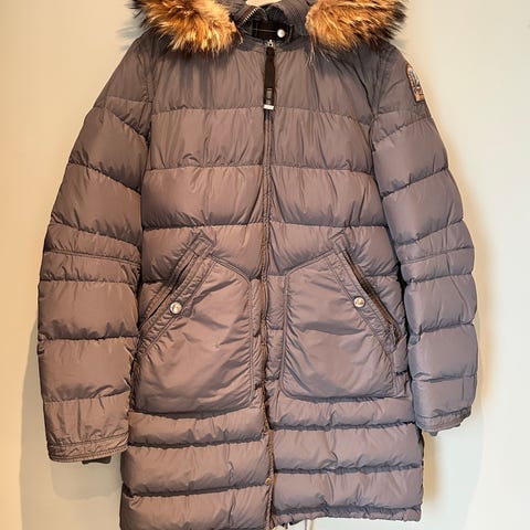 Modellen har en slim fit passform og inkluderer hette med ekte pelskant. Passer til kaldt vær og gir varme og beskyttelse. Fint og lite brukt.