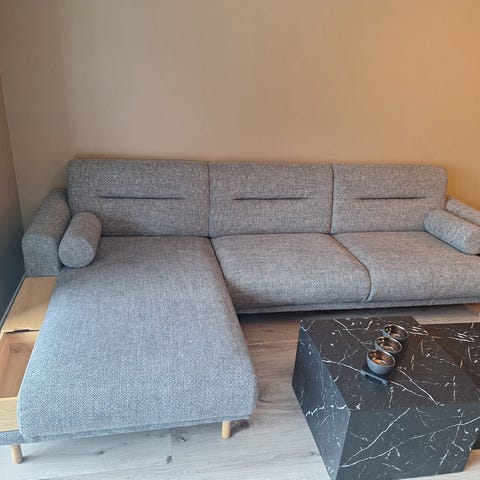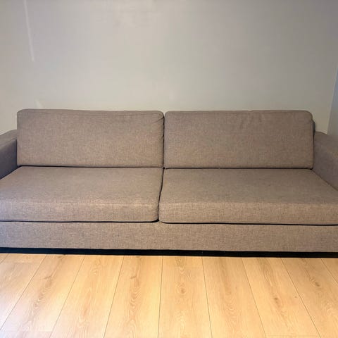 Flott brun grå spraglet sofa. Det er et merke av tråder i hjørne på sofaen (se bilde)