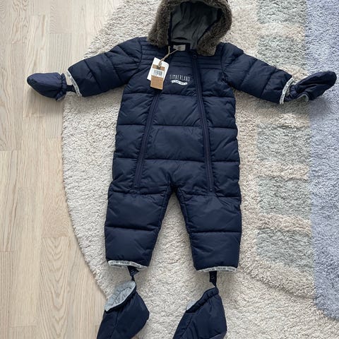 Timberland vinterdress i mørkblå, str 74. Sokker og votter følger med.