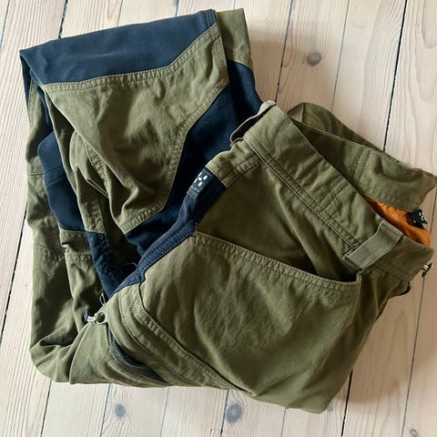Haglofs bukser i grønn farge. Laget av slitesterkt materiale, designet for utendørs bruk.