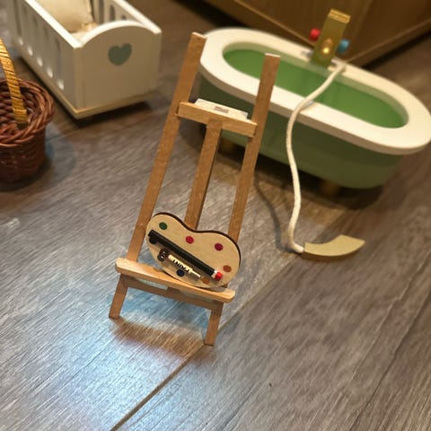 Lundby Dukkehus med flere rom og innvendig dekorasjon, inkludert tapet i ulike mønstre og farger. Må hentes på Vollebekk