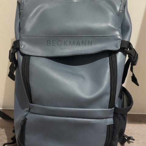Beckmann City Max ryggsekk i svart farge. Sekken har flere rom og polstrede skulderstropper for komfort. Innvendig fôr med stripete mønster. Inkluderer regntrekk i grønn farge med refleksstripe for økt synlighet.