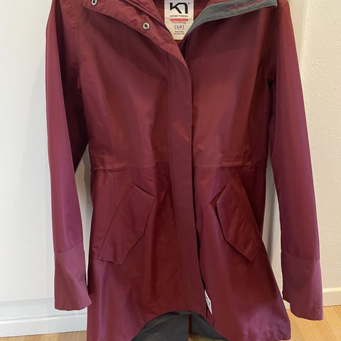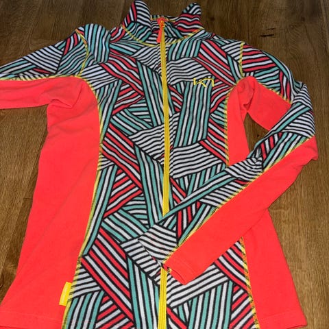 Kari Traa jakker i størrelse S for dame. Jakken har svart farge med detaljer i rosa, og er designet for damebruk.
