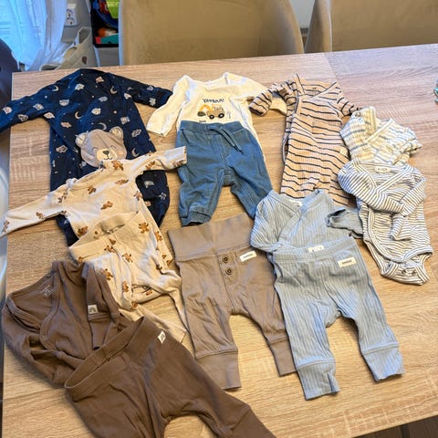 Kjempesøt klespakke i nøytrale farger størrelse 50. Passer til begge kjønn. Klærne er fra Lindex, H&M, Cubus og Newbie. Alt er veldig lite brukt og fremstår som nytt.
