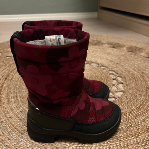 Kuoma barnestøvler i størrelse 24. Støvlene er laget for å gi varme og beskyttelse til barnets føtter. De har en solid såle med godt grep og er foret med isolerende materiale for komfort i kaldt vær.