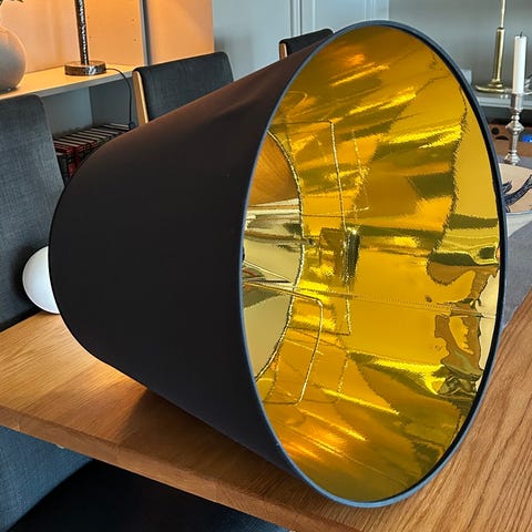 Pendellampe med lyspære. Pæren gir et varmt lys til rommet. Lampen er som ny. Den har en lang leding som gjør at den kan både henge i vindu og fra taket.