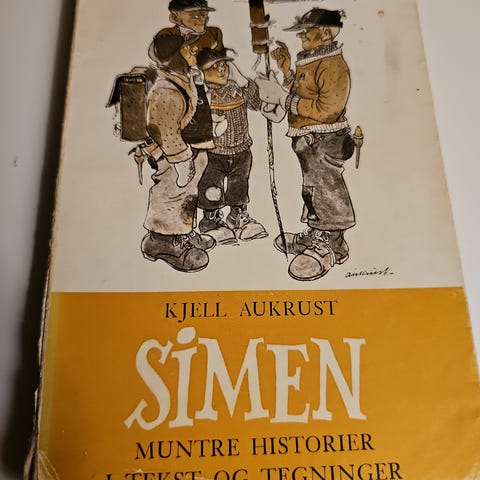 Kjell Aukrust Bror Min bok med muntre historier og tegninger av forfatteren. Utgave: 20. opplag, utgitt i 1960 av A/S Helge Erichsens Forlag. Boken har en hvit og gul omslagsdesign med illustrasjoner. Cover er skadet og boka er løs fra cover - se bilde.