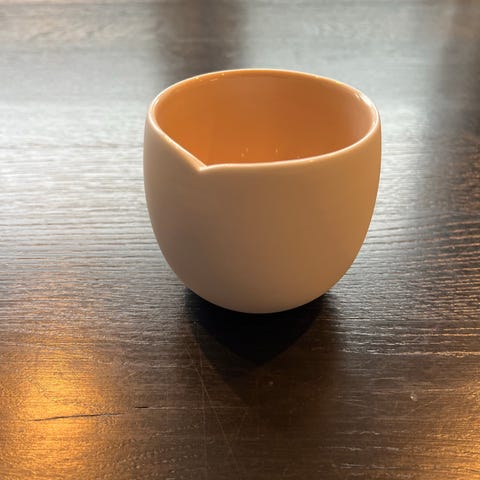 To krus med rund form og liten tut for helling. Egnet for servering av varme drikker eller små mengder væske.