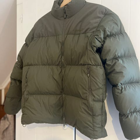 Mammut dunjakke i størrelse M. Fin grønn farge. Jakken er veldig varm og lett. Den har et lite hull på høyre arm (se bildet). Nypris 4000kr.