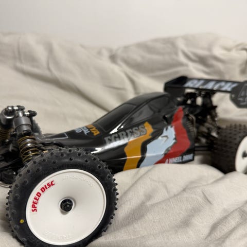 Vintage Optima med noen nye deler (nye dempere, ny body, nye dekk), selges rullende, ukjent om vintage servo eller fartsreg. funker. Original body har sett bedre dager men er brukbar. Alt beveger fritt og fint, kjeden er på plass. Kommer med ettertraktet Le Mans 480S blue can. Se bilder for mer detaljer.