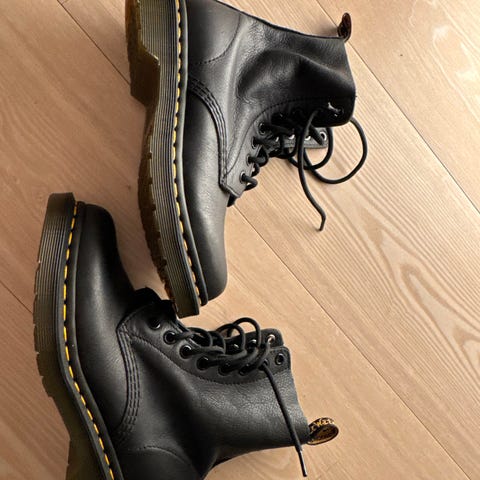 Dr. Martens Serena støvler i størrelse 37. Støvlene er svarte og foret i mykt ull. Veldig lite og pent brukt. Selger fordi de er for små til meg.