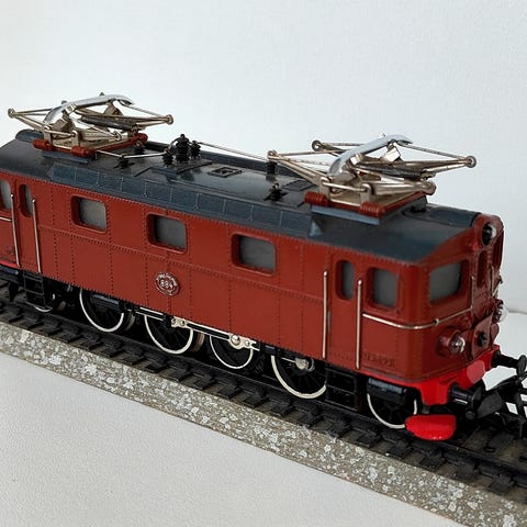 Gammel togsett fra Hornby England selges. Toget fungerer fortsatt etter mange år og. Toget går sakte med trafo som er plasert ved banen. Men den går raskere med en vanlig ny trafo. Det kan også kjøpes med en tillegg pris. Må hentes!