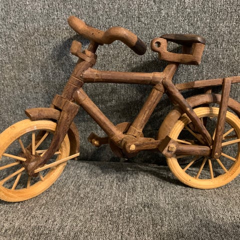 Metall sykkel dekorasjon med flere melkespann festet. Passer som dekorativt element i hjem eller butikk. Hei.