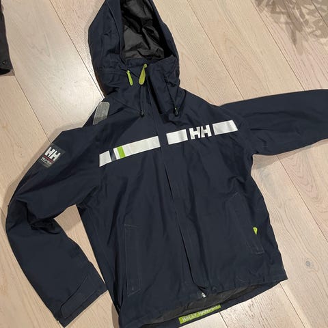 Helly Hansen jakke i blå farge, størrelse S, laget av nylon. Jakken er designet for utendørs bruk og har funksjonelle detaljer som gjør den egnet for ulike værforhold.