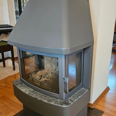 22 mod Lacunza Paris 800 peisovn. Dette er en stor reintbrennende ovn, opptil 70 cm vedlengde, med elektrisk vifte som blåser ut varmen, kan varme store hus, varmer 7-12 kw. Lite brukt. Nypris ca 32000,-. Sender med 1 m røykrør. Se bilder.... Holdt av til kunde.