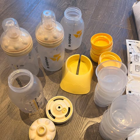 Div flasker med tilbehør fra medela. Minimalt brukt. Det som er brukt er så klart sterilisert/kokt.