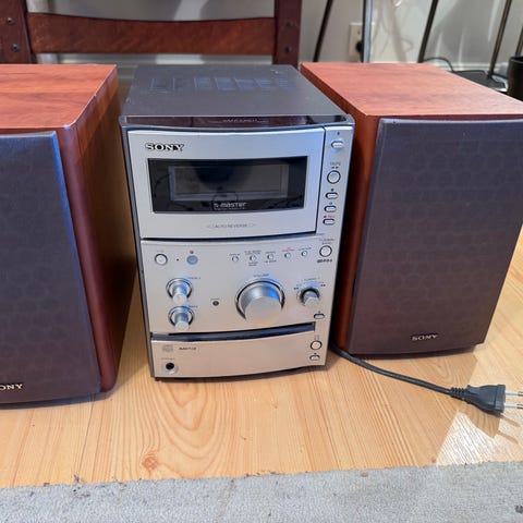Pent brukt Sony stereoanlegg selges. Alt fungerer som det skal, inkludert CD, kassett og radio.