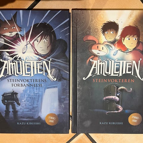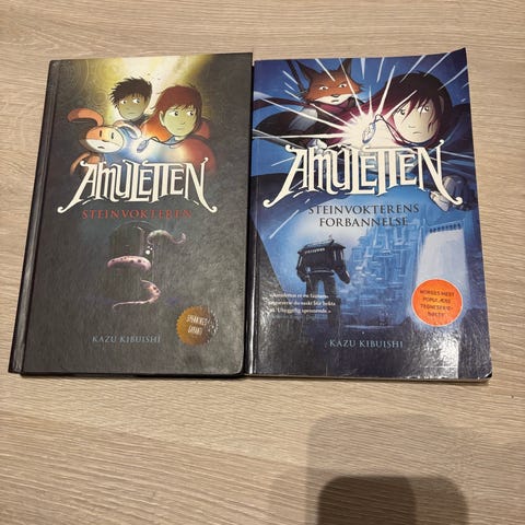 Bok 1 og 2 i den kjente serien Amuletten av Kazu Kibuishi. Bøkene er i pocketutgave og i god stand.