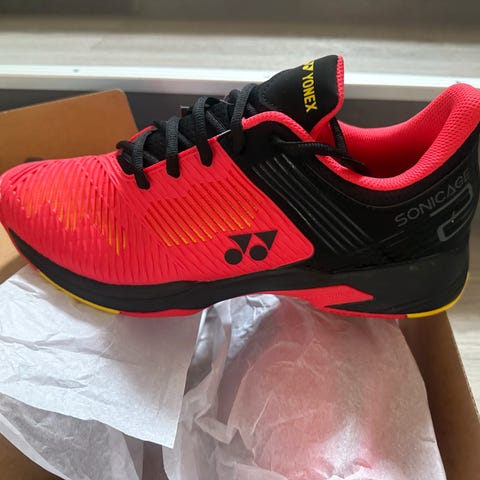 Yonex tennissko herre str 39,5. Kun brukt en gang, fremstår som nye.