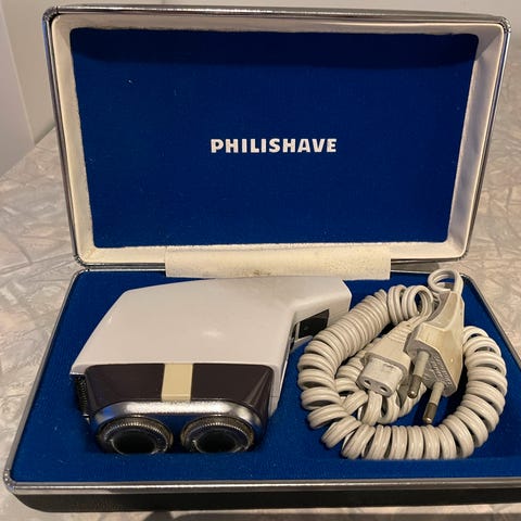 Retro Philishave elektrisk barbermaskin med ledning. Antatt fra 70-tallet. Maskinen fungerer, men egner seg nok absolutt best som hyllepynt.