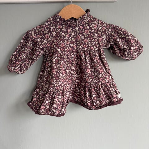 Newbie Barneklær Kjole i blå bomull, størrelse 56, designet for jenter. Kjolen har knappelukking bak.