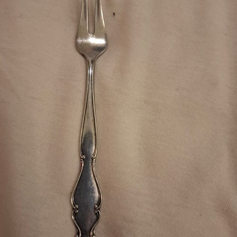 Fem Victoria vintage gafler i sølvplett selges for 50 kroner per stykk. Vintage gafler med vanlig bruksslitasje.
