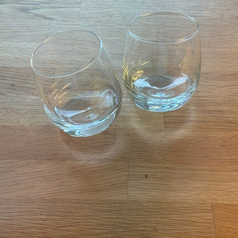 Glassene er standard bar-glass (tumbler/old fashioned og highball/longdrink), slik de ble brukt på puber, hotellbarer og i serveringsbransjen. Dette er ikke nye reproduksjoner, men eldre reklametrykk i klassisk design.