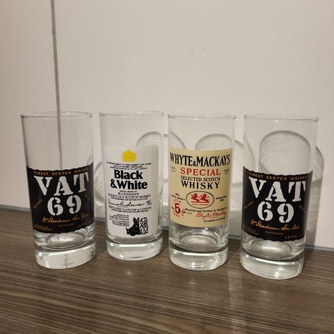 Whisky- og longdrinkglass med klassiske whiskymerker – 5 stk av hver type
