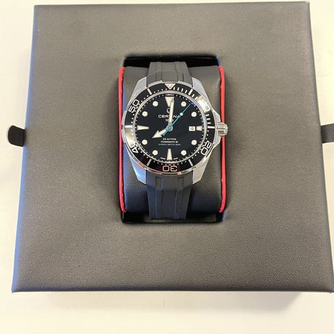 Jeg kjøpte denne ny i Januar 2024 og har kun blitt brukt noen få ganger så denne vil jeg si er som en ny klokke. Denne er kjøpt fra Nederland, mva er betalt og mva papirene følger selvsagt med. Boks og papirer følger også med. I dag heter dette klokkemerket Venezianico