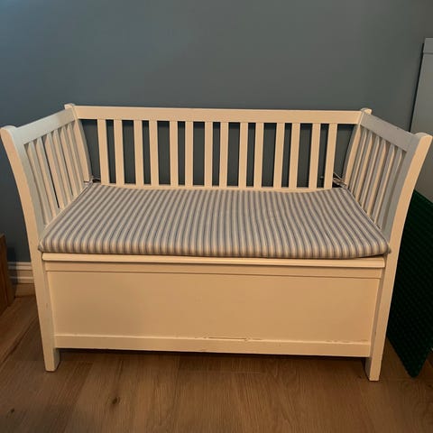 Hel komplett Leander Classic seng i valnøtt. Den inkluderer forlengersettet som øker lengden fra 120 til 150 cm, to sengehester, madrass og ekstra madrassdel for juniorsengen, sengekant for baby, og diverse tekstiler.
