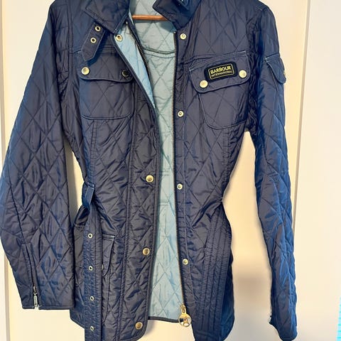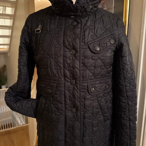 Barbour Quiltet jakke for dame i mørkeblå farge. Jakken har quiltet mønster og knapper foran. Den er designet for å gi varme og komfort i kjøligere værforhold.