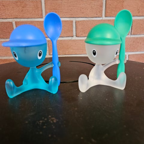 3 morsomme eggeholdere i stål og plast. Minner om Alessi, men er det ikke. I god kvalitet.