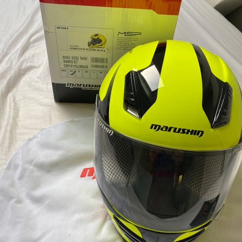 Det er en NHK road fighter hjem (modell Word Class Racing Helmet) produsert i 2020, strl XXL.