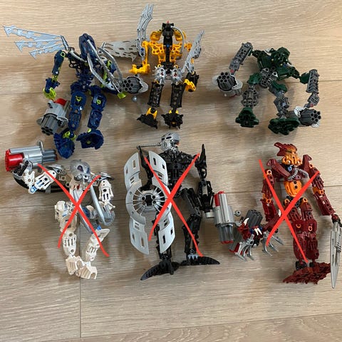 LEGO Technic Bionicle (Pohatu) og Technic Robo Riders (Swamp) fra 2001 og 2000