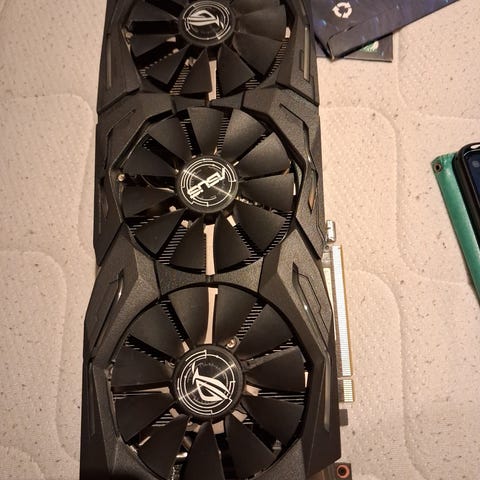 Selger mitt Asus GeForce ROG Strix RTX 2080 Super OC grafikkort 8G. Pent brukt