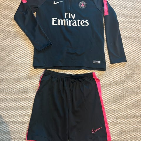 Nike PSG Neymar Jr , fotballdrakt og shorts i mørkeblå farge str 12-14 år 200kr. Drakten har trykk med nummer 10 og navn Neymar Jr. Shortsen har elastisk midje og PSG-logo (SOLGT). Passer for fotballspillere og fans. Gammel Neymar drakt når han spilte i Barcelona, str 8-11 år. Pris100kr (SOLGT). Real madrid settet er nesten ikke brukt, selges 400kr str 10-16 år.
