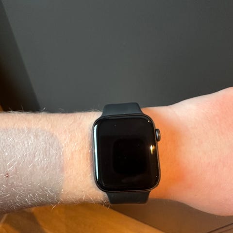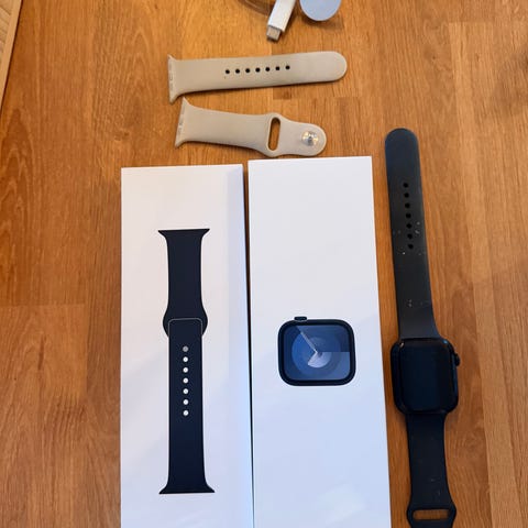 Selger en Apple Watch Series 9 (GPS) 45 mm i svart/midnight. Klokken fungerer helt fint.