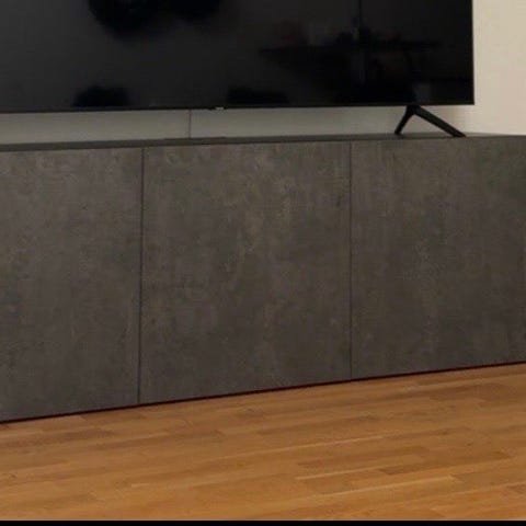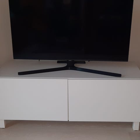Solid benk som har rikelig med oppbevaring. Kan brukes som Tv-benk eller annet. Flere hyller som også har dører. Benken har fin betonglignende overflater utenpå og inni og med hvite dører.