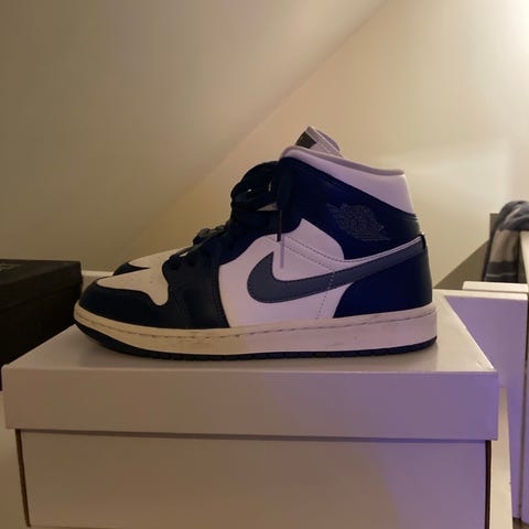 Air Jordan Sneakers joggesko i størrelse 40. Skoene har en kombinasjon av svart, hvitt og rødt i designet. Egnet for daglig bruk eller sport. Veldig gode og lette sko.