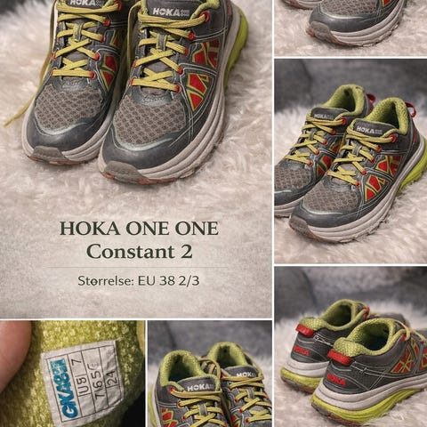 Hoka, s.Oliver, Alfa og Triumph Formfit. Eneste bruksmerker er 2 "hull" i hælene ved Hoka skoene, men dette merkes ikke når man bruker de. Ellers er de andre parene ubetydelig brukt. Hentes i Moelv.