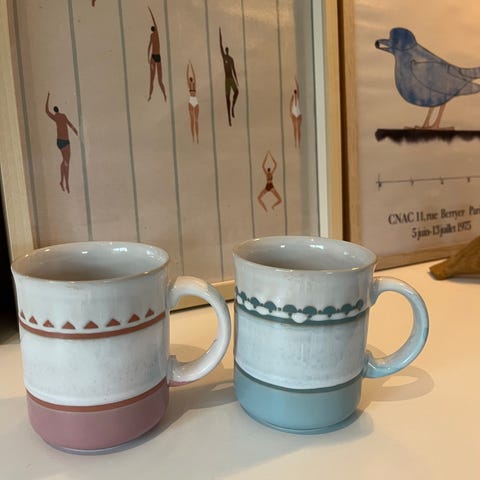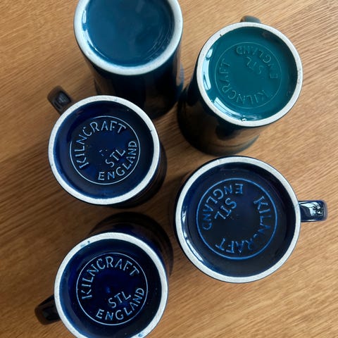 Flott sett med 6 kopper, engelsk vintage. Naturlig bruksmerker, i fin stand
