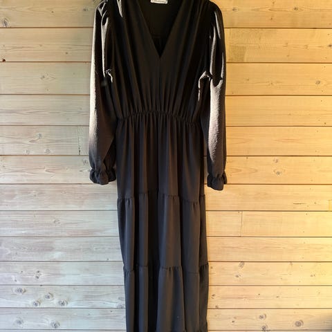 Nydelig og elegant kjole i fløyel i fargen dyp bordeaux (vinrød) fra Floyd. Str M. A-fasong og puffermer. Brukt én gang i julen. Utrolig fin, men er litt kresen på hvordan kjoler sitter og fant en annen som satt enda bedre.