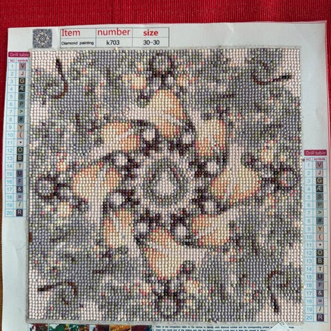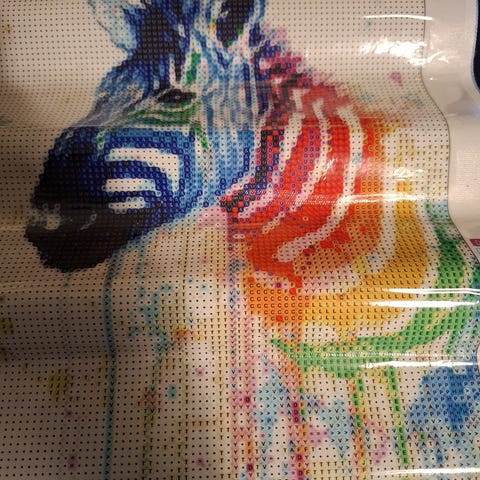 Inkluderer trykt lerret med nummererte ruter, fargede diamanter, og verktøy for påføring