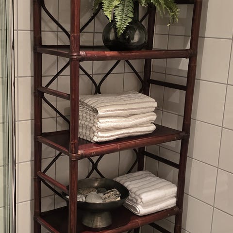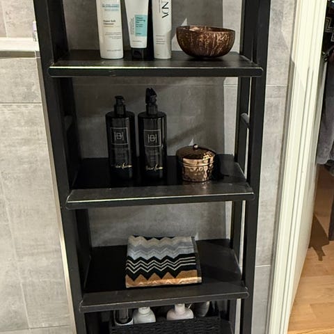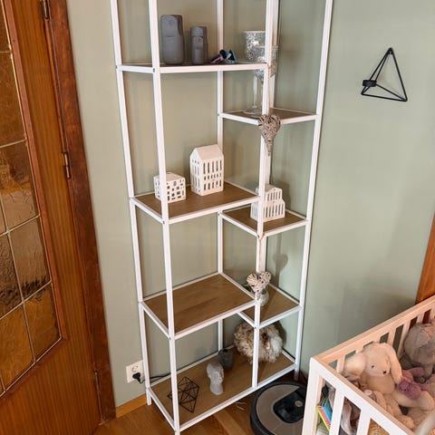 Trappedal reol fra jysk med 7 hyller selges i god stand. Den er varm eikefarget/svart og passer godt som baderomsinnredning og ellers i hjemmet.
