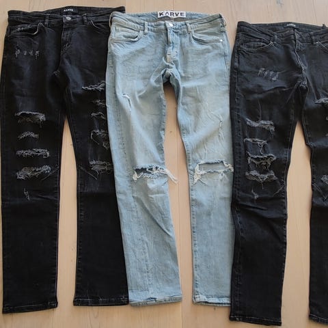 Div bukser fra Levi's og Karve. 100kr hver. Levi's er 511, 30/32, de brune er 31/32, Karve er medium, og chinos er 31/32.