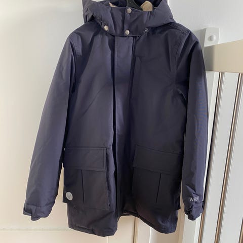 Pent brukt Wheat vinterjakke. Det er litt slitasje utenpå lommen, ikke noe som går gjennom stoffet eller som påvirker bruken og det er ikke veldig synlig. Dette er en veldig god og varm vinterjakke som også tåler ganske mye regn.